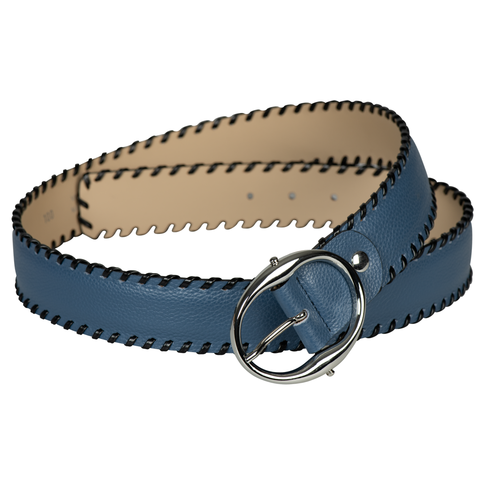 BONNIE – die Neckische. Der mit einer Handziernaht produzierte Damengürtel ist aus natürlich genarbtem Kalbleder gefertigt. Er ist gerade geschnitten und einfach kürzbar. Die dekorative Schliesse macht ihn zum Hingucker jeder Garderobe.